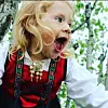 Ylva Dalland Helland fanga i ein herleg augneblink på 17. mai. (Foto: Johanne Dalland)