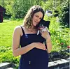 Yvonne Kongsvik Eilertsen må venta til neste år før bunaden passar igjen. Ho viser stolt fram magen. (Foto: Privat)