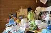 PREMIEBORD: Skulekorpsbasaren kunne lokka med mange fine premiar. Blant anna dokkehus, måleri, hardangerløpar og middag på Haaheim.