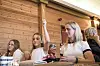 LYKT: Tuva spelar i skulekopset, men her har ho vinnartalet. Synnøve Sundal følgjer med.