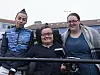 BLIDE: Desse tre såg naut musikken frå avstand, på rullestolplattinga. Frå venstre: Polina Petrova-Ilieva, Kristine Bruket Johansen og Natalie Anundsen Kristoffersen. (Foto: Vetle Mikkelsen)