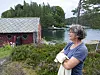 STOLT: Wenche fortalde ivrig om arbeid ho har gjort på Erleholmen, tydeleg litt stolt over dei mange hundre arbeidstimane ho har lagt ned. I bakgrunnen ser ein det gamle naustet frå 1890. (Foto: Vetle Mikkelsen)