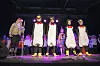 VAGGANDE TYPAR: På Sørpolen fekk me helsa på desse miljøbevisste pingvinane, spelt av f.v. Mathilde Sætre, Ronja Haugstad, Denis Titoks og Jeanette Sofia Misje. Gjetaren deira (t.v.) er Susannna Aarskog.