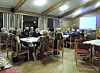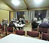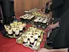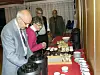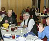 Lars Mevatne og Egil B. Berge forsyner seg med kjøtsuppe. Mannen med handa er Jan Økland. I bakgrunnen t.v. Lilly Reiso.