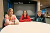 MANUSFORFATTARAR: Etter innspel frå alle elevane om kva teaterstykket «Juletrøbbel» skulle handla om, sette desse tre seg ned og skreiv eit heilt manus. Frå venstre: Iselin Nilsen, Selma Nikolaisen og Vetle Belt.