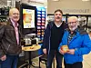 FYRSTE KUNDE: Svein Søreide (til høgre) har kjøpt cdar til å gje i julegåve. Kolbjørn Tvedt står til venstre og Ander Bakke i midten.