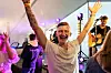TOPP STEMNING: Som gliset tilseier, er Markus Frøkedal Kjerrgård storfan av Vidar Villa. Onsdag fekk han sjå dei live på e-brygga i Våge. Alle foto: Ella Sandra Dahl Berland