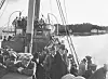 SMIKKFULL: Bergen Turlag på utflukt med D/s «Solstrand» ein gong i 1920-åra. Det kan sjå ut som dei er på veg frå Godøysund. Båten kunne ta 280 passasjerar, men på slike utflukter var det nok meir enn 280 om bord. (Foto: Olai Schumann Olsen/Marcus/UiB)