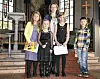 UNGE MUSIKANTAR: Dei fire musikkantane saman med læraren sin. Frå venstre Mari Meland, Camilla Rosseland, Jurgita Bubilate, Julie Aarvik og Faustas Jocius.