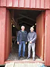 GJER EIN VIKTIG JOBB: Bernhard Gjerstad (t.v.) og Vegard Aslaksen tykkjer det er viktig å vidareføra interessa for seglsporten, og jobbar aktivt for å rekruttera nye seglarar til Siglarlaget Njord Tysnes. Her vitjar dei naustet til Harald Dalland, der båtbyggjaren bygde mange av dei oselvarane som fleire tysnesingar seglar den dag i dag.