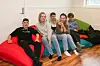 KLARE FOR SOMMARFERIE: Ungdomane samla på Treffstaden i Våge i vekene før sommarferien. Frå venstre: Oliver Nordtveit Fagerbakk, Maja Aase Bakkane, Benjamin Akyuz Hagen, Elise Sørhus Dalen og Thor Murat Eide.