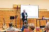 MÅ UTSETJAST: Dei planlagde seniortreffa torsdag 28. januar må utsetjast på grunn av koronasituasjonen, fortel Per Verner Aase i Tysnes Frivilligsentral. Her er Per Verner Aase på seniortreffet på Reksteren i november. (Arkivfoto: Ella Sandra Dahl Berland)