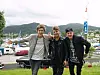 KLARE FOR FANSEN PÅ TYSNES: The Main Level er klare for å møta fansen på Tysnes. – Me gler oss, seier f.v. Sander Helmers-Olsen, Laurent Kelmendy og Alexander Instøy. Laurdag klokka 15.00 er det konsert på kaien i Våge.
