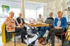 FASTE KAFÉTREFF: Kvar fredag møtest venninnene på kafé i Våge. Det skal mykje til for at treffa vert avlyste. Framme frå venstre: Liv Olsen, Eva Lande, Anni Dalland, Torbjørg Kristoffersen og Unni Langballe.