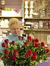 50 RAUDE ROSER: Linn R. Frøkedal gjer klar kjempebuketten med roser som ei heldig dame kan venta seg i dag.