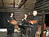 STEMNINGSFULLT: I ei mørklagd Seløystove med berre levande ljos framførde Ole Didrik Lærum (frå høgre), Laila Kolve og Reidun Horvei ei heilt spesiell soge gjennom forteljing, song og musikk om gamle stover.
