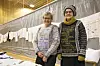 STRIKKING: Ingrid Færevaag Håvik (t.h.) viste fram Peer Gynt-lusekoftene ho har strikka. Gerd Landeråen stilte som modell.