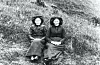 VANLEG HOVUDPLAGG: Systrene Gyri og Anna Vevatne, fotografert ca. 1920- eller 1930-talet, begge iført den tradisjonelle svarthuva som var så typisk for Tysnes. (Foto: Lokalhistorisk arkiv i Tysnes).