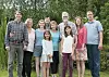 FAMILIEN OLSEN: Gregory Olsen (f.v), Holly Olsen, Andrea Olsen Swisher, Scott Swisher, Christine Olsen, John Olsen, Jennifer Marie Olsen Osweld, Douglas Osweld. Dei to jentene framme frå venstre er Elisabeth Olsen Osweld og Kate Olsen Osweld.