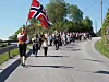 ONARHEIM: Ørjan Kjerland var flaggbærar og Lise Iren Sandtorv bar fana til Onarheim musikklag i folketoget. Her frå Stølshaugen, der prosesjonen starta i år. (Alle foto: Ole Skaten)