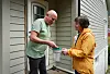 GAV FOR ANDRE GONG: Jean-Francois Goeffry har alt bidrege med pengar, men gav litt til då bøssebærar Annike Vermedal kom på døra i går ettermiddag.