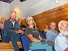 LYTTANDE FORSAMLING: Hans Tore Brekke frå Solheimsdalen Grendalag (t.v. i biletet) synest det er ei kjempeflott ordning å overføra kraftlagsaksjar til lag og organisasjonar.