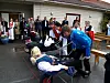 POPULÆRT: Liggjande i trillebårene, f.v. Åshild Matre (soknerådslaget), Kjersti Marita Skaten (Årbakkalaget) og Gerhard Meidel Alsaker (open klasse).