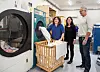 VISER SEG FRAM: Ny styreleiar i Tysnes Industri, Ove Lunde (t.h.) er oppteken av å få fram kor viktig den verna bedrifta er for lokalsamfunnet Tysnes. Her saman med dagleg leiar Martha Nygård Lande (i midten) og VTA-medarbeidar Thea Helen Godø under arbeid i vaskeriet.
