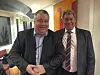 Ordførar Kjetil Hestad i samtale med statssekretær Bård Hoksrud i samferdsledepartementet. (MMS-foto/KH)