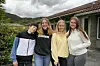 MANGE KJENSLER: Nervøsitet, glede, lette, vemod – dagen var full av kjensler for tiandeklassingane. F.v. Atle Hystad, Malin Dalland, Henriette Lid Hillesvik og Alida Tvedt Petterson.