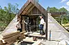 FORNØGD ORDFØRAR: Kåre Martin Kleppe likte det han fekk sjå av den nye dagsturhytta. Her i prat med Dag Eivind Hagesæter (t.v.) og Håvard Prestvik frå Stad Kystbygg, som monterer hytta.