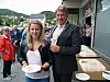 HEIDRA VERSREKORDHALDAREN: Ordførar Kjetil Hestad ynskte Anna Dorthea Espevik velkomen heim til Tysnes, med tale med velvalde ord, blomar og kakefest i Våge fredag ettermiddag.