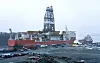«Deep Value Driller» blir liggjande ved industrikaien i Nedrevåge i ein periode for å utføra arbeid om bord.