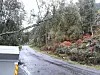 TREVELT: Det var fleire tre som fall over kraftlinjer natt til torsdag. I nokre tilfelle førte det til at enkeltpersonar stod utan straum. (Foto: Privat)