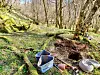 SJELDAN FUNN: Nyleg vart det gjort funn av steinalderlokalitet med aktivitet frå yngre steinalder 67 m.o.h i skogen ved Høviskelandslia. (Foto: Vestland fylkeskommune)