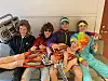 KLARE FOR SHOW: Sitjande f.v. Theodor Meland, Tobias Dalen Hagen, Brede Kleppe Røssland og Noah Olsson Aslaksen, og liggjande: Samuel Dalland. (Foto: 10.klasse/Elin Bergesen)