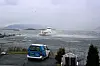STERK VIND: I går var vinden så sterk i Våge at Selbjørnsfjord ikkje kom seg til kai, og måtte gjera vendereis til Halhjem. I morgontimane i dag har ferjesambandet kansellert igjen. (Foto: Magnar Drange)