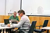 POSITIVE TILBAKEMELDINGAR: Både leiar i kontrollutvalet, Lorentz Lunde (t.v.) og Helge Inge Johansen frå sekretariatet var nøgde med kommunen si økonomistyring. Det var og revisor Bjarne Ryland (bak), som deltok i møtet på Teams. (Foto: Ole Skaten)