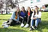 KLARE FOR MATOMA: Maren Jensen Nes, Mailinn Helland, Mia Jensen Nes og Annica Vee hadde funne seg til rette på festivalområdet fredag, og venta aller mest på å høyra artisten Matoma.