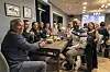 GOD STEMNING: Det var ein godt nøgd Høgre-gjeng som fekk vita resultatet av førehandsrøystinga på Mandelhuset klokka 21.00 i kveld.