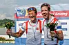 JUBEL: Kristoffer Brun (t.v.) og Are Strandli sikra seg VM-gull i dobbelsculler i roing (lettvekt) i Korea i 2013. – Det er kanskje det største eg har opplevd i ein lang idrettskarriere, seier Kristoffer Brun (36) til «Tysnes», i ein pause frå tømrarjobb på Reksteren. (Foto: Lee Jin-man / AP / NTB)
