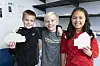 GØY: Vegard Stien Instøy, Isak Mathias Holme og Sarina Sakhi Zade i 5. klasse er fornøgde med prøveprosjektet «Heimstaden», der Tysnes skule har teke i bruk nye læremetodar, som eit forsprang til dei nye læreplanane som kjem i 2020. (Alle foto: Ella Sandra Dahl Berland).