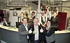 BANKJUBEL: Banksjef Dag Sandstå, styreleiar Leif Magne Hovland og økonomisjef Karoline Dalen og andre tilsette i banken kunne på desse tider i fjor jubla over den store interessa for å kjøpa eigenkapitalbevis. No kan dei jubla for eit historisk årsresultat for 2017. (Arkivfoto)