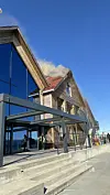 EVAKUERING: Flammane hadde akkurat byrja bli synlege då kammerkoret evakuerte mot sjøsida.