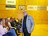 ALVOR OG HUMOR: Føredragshaldar Trond Haukedal i Tysneshallen fredag kveld.