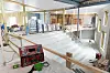 NYTT MELLOMTRINN: Det er stadig utvikling i bygginga av det nye mellomtrinnet, og arbeidarane er godt i gang med det innvendige arbeidet.