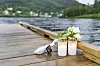 BLOMAR OG LYS: Undersøkelsessaka rundt drukningsulukka i Kyrkjevatnet i juni er no avslutta. Politiet meiner at ingen kan lastast for ulukka. (Arkivfoto)