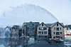 SJØVATN: Fleire titals tusen liter sjøvatn blei nytta i kampen mot flammane. Det hadde effekt.