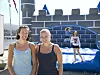 HOPPESLOTT: Venninnene Anette Kårstad og Ida Skaaheim er ofte i hamna med barn og familie. I bakgrunnen: Alida Kårstad Fauske (7) og Maria Lunde (9).