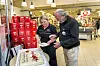 FEIRA MED KAKE: Butikksjef Natalija Berg serverer kake til Knut Jørgen Gjøvåg på Spar. Kaka vart spandert av Norsk Tipping.